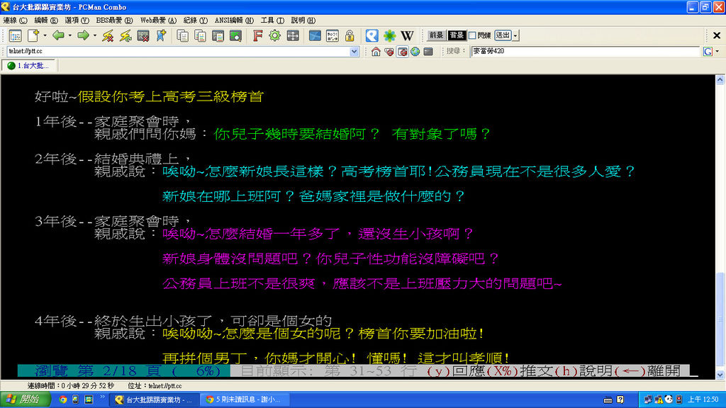君不見ptt板上相當多:強者我朋友建中資優、台大榜首、年薪千萬、妻美子孝